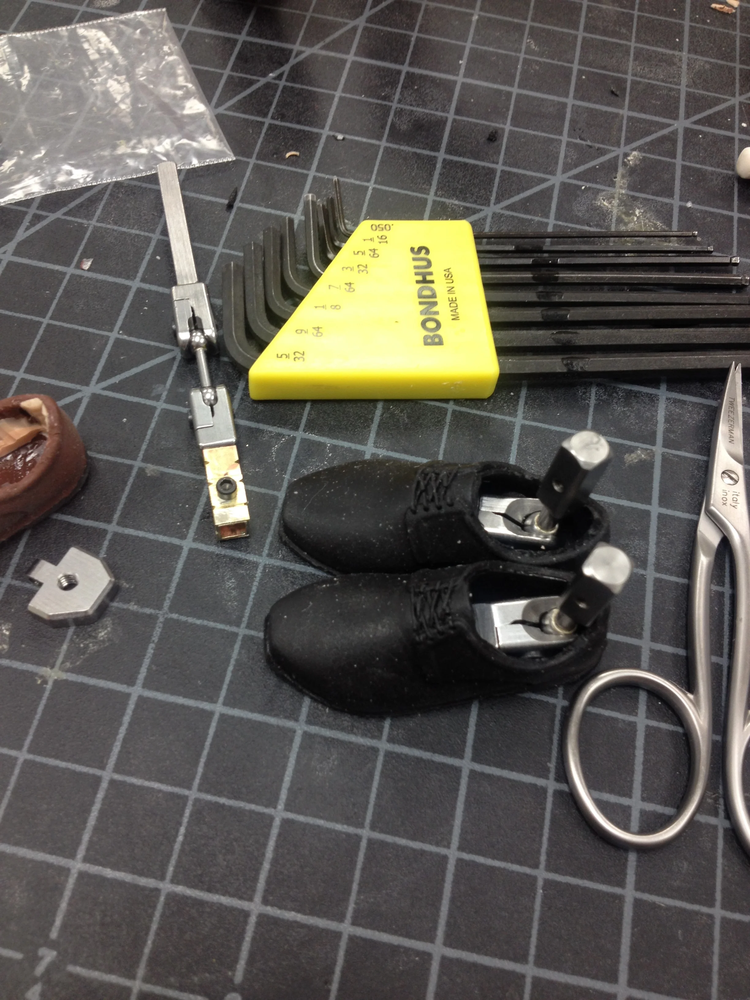 To achieve this, I had special custom machined parts made to fit pre-existing puppet designs.